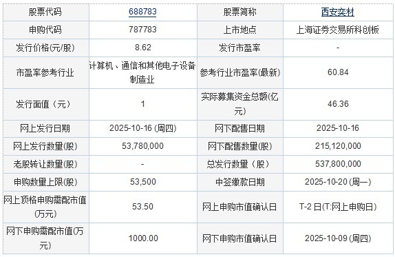 西安奕材2025年10月14日披露的首次公开发行股票并在主板上市发行公告显示,按本次发行价格8.62元/股和53,780.00万股的新股发行数量计算,若本次发行成功,预计公司募集资金总额463,583.60万元网络在线股票配资,扣除发行费用(不含增值税)12,900.85万元后,预计募集资金净额为450,682.75万元。