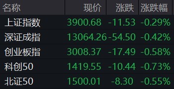 沪指开盘跌0.29%,报3900.68点,深成指跌0.42%,报13064.26点专业配资论坛,创业板指跌0.58%,报3008.37点,科创50指数跌0.73%,报1419.55点。集合竞价阶段沪深两市合计成交额161.27亿元,全市场近3000家个股下跌。