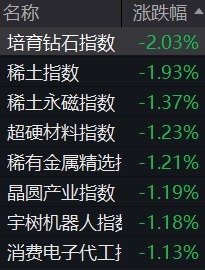 国家发改委等六部门印发电动汽车充电设施服务能力“三年倍增”行动方案,概念股大幅高开;医药、军工、光伏板块表现活跃;机器人概念回调,三花智控低开近5%;稀土、培育钻、EDA等板块指数跌幅居前。