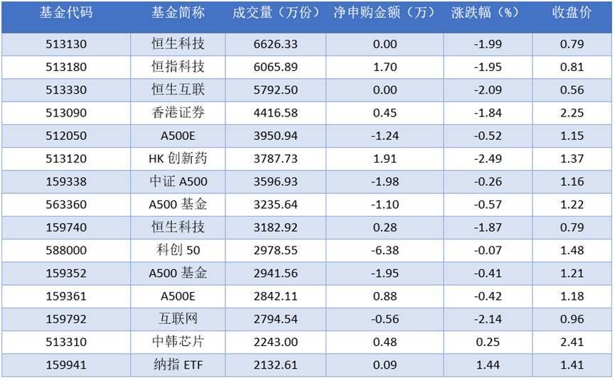 从成交量上来看,2025年10月22日成交量最大的是恒生科技(513130),成交量为6626.33万份。排名靠前的恒指科技(513180)、恒生互联(513330)、香港证券(513090),成交量分别为6065.89万份、5792.50万份、4416.58万份。